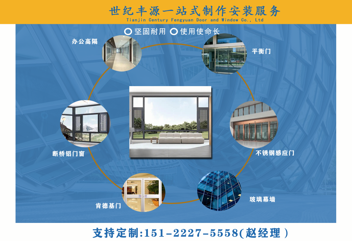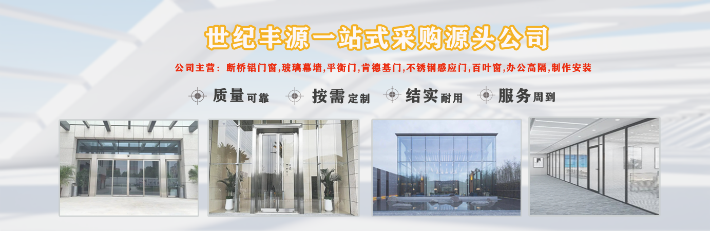 天津世紀(jì)豐源門窗有限公司從事斷橋鋁門窗,玻璃幕墻,平衡門,肯德基門,不銹鋼感應(yīng)門,百葉窗,辦公高隔,制作安裝一站式訂制生產(chǎn)及配套服務(wù)等?! 」咀猿闪⒁詠?,始終堅(jiān)持以人才為本、誠信立業(yè)的經(jīng)營原則,薈萃業(yè)界精英,成熟的技術(shù)、管理方法及企業(yè)經(jīng)驗(yàn)與國內(nèi)企業(yè)的具體實(shí)際相結(jié)合,為企業(yè)供給各個(gè)方面的解決方案,使企業(yè)在激烈的市場(chǎng)競爭中始終堅(jiān)持競爭力,實(shí)現(xiàn)企業(yè)快速、穩(wěn)定地發(fā)展?! ≠|(zhì)量好、服務(wù)好、才能信譽(yù)好,公司已在諸多領(lǐng)域取得輝煌成績,愿意成為您可信賴的長期合作伙伴?! ∽屛覀償y手同行,共同實(shí)現(xiàn)“讓普通老百姓都用得上高端門窗”...
